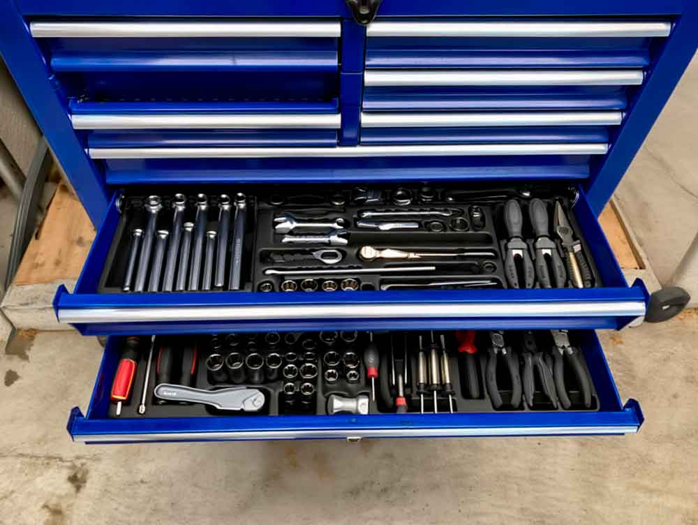 Этот роскошный синий инструментальный ящик — идеальное решение для автосервисов, мастерских и гаражей. В комплект входит более 50 различных инструментов: длинные и короткие головки, трещотки, переходники, удлинители, крестовые и плоские отвертки, плоскогубцы, кусачки, мощные рулетки и шестигранные ключи. Органайзер внутри ящика позволяет быстро найти нужный инструмент, поддерживать порядок и увеличивать производительность работы. Металл инструментов покрыт антикоррозийным составом, что гарантирует долговечность даже в условиях интенсивного использования. Открытие ящиков плавное и бесшумное, а прорезиненные ручки обеспечивают комфорт при переноске. Комплект предназначен для профессионалов любого уровня — от начинающих до опытных мастеров, а также для домашнего использования при ремонте автомобилей, бытовой техники и мебели. Такой ящик — это безопасность, аккуратность и высокое качество работы, всегда под рукой самые востребованные инструменты для любых задач.