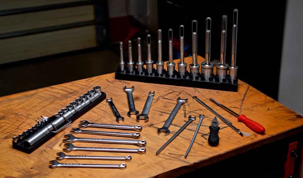 Универсальный набор инструментов, который идеально подойдёт как профессионалам, так и любителям ремонта автомобилей и техники. В комплектацию входят свечные головки различных размеров, удлинители, трещоточные ключи и комбинированные рожковые гаечные ключи. Все элементы размещены на удобной и устойчивой подставке, что обеспечивает идеальный порядок на рабочем месте и ускоряет поиск необходимого инструмента. Прочные материалы изготовления гарантируют длительный срок службы. В наборе присутствуют также шлицевые и крестовые отвёртки, длинные тонкие выкручиватели и универсальные рукоятки для бит. Ни одна задача по ремонту двигателя, подвески или бытовой техники не станет проблемой благодаря этому комплекту. Такой набор будет незаменимым помощником в автосервисе, гараже или домашней мастерской и прекрасно подойдёт как для точных работ, так и для грубого ремонта. Продуманность хранения и эргономика инструментов делают рабочий процесс максимально комфортным и эффективным, а высокое качество исполнения гарантирует точную посадку и надёжный контакт с крепёжными элементами
